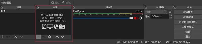 色源 | 使用这个来源可以添加一个色块到您的场景中,作为一个背景色,该色块可以调节透明度,成为全屏透明色彩。 |
