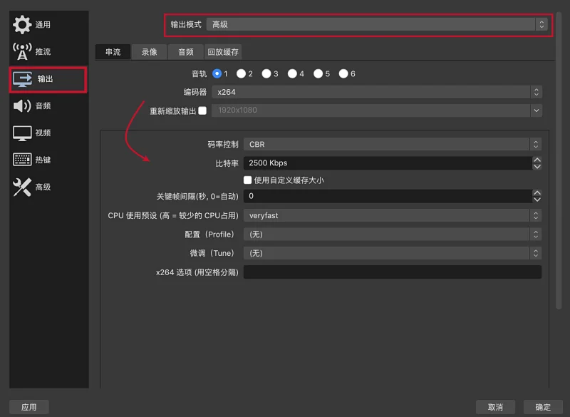 ▪️点击【输出】-选择【输出模式】为高级,可对【关键帧间隔】等进行设置;
