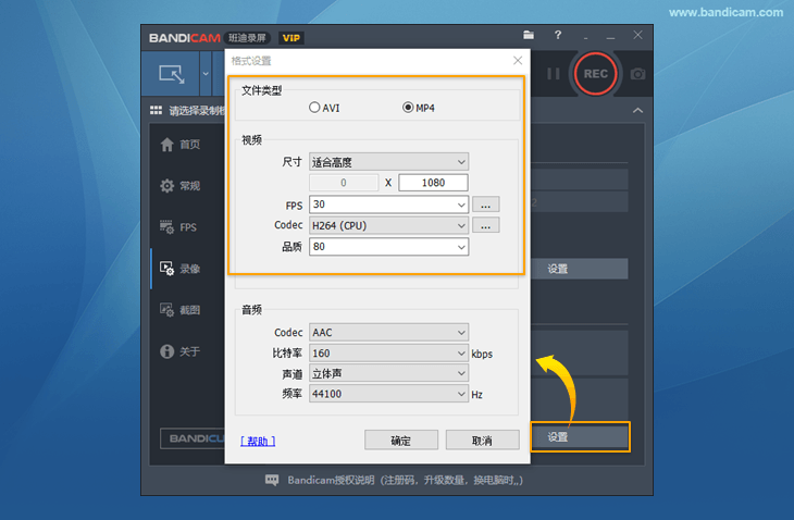 您可以设置保存视频的格式(AVI、MP4)、视频尺寸、大小、编码器、FPS、质量等。 » 设置视频格式的方法